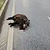 İhbar üzerine olay yerine sevk edilen polis ekipleri gerekli güvenlik önlemlerini aldı. Telef olan yaban domuzu belediye ekiplerince yoldan kaldırıldı.