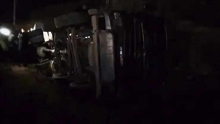 Konacık Mahallesi'nde şantiye alanında meydana gelen kazada, yolun bozuk olması nedeniyle yan yatan beton mikserinin sürücüsü yaralandı olayla ilgili inceleme başlatıldı.