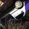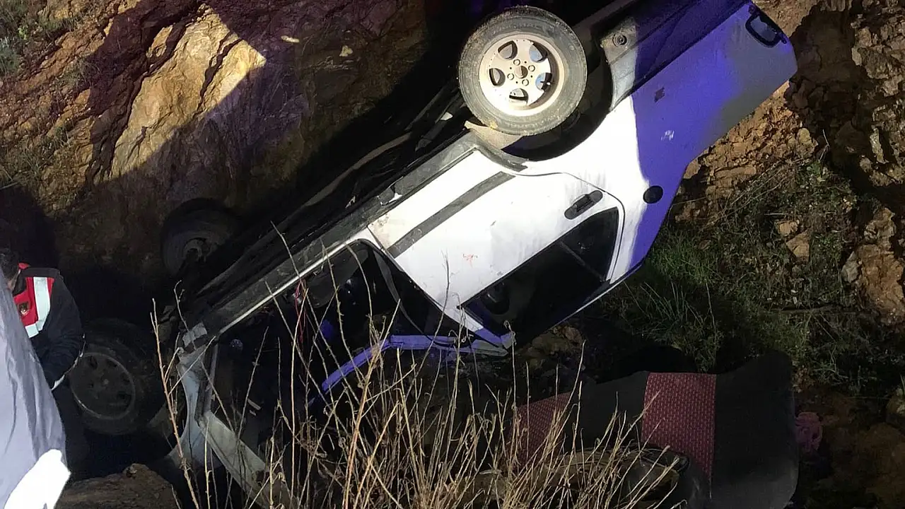 Bodrum'da kontrolden çıkan otomobil yaklaşık iki metrelik şarampole yuvarlanırken, kazaya karışan sürücünün belirlenmesi için çalışma sürüyor.