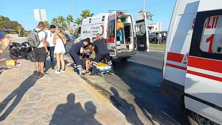İddiaya göre, kendi yolunda seyir halinde giden motosiklet sürücüsü aniden sağ tarafa dönmek isteyen ve önlerine geçen araca yandan vurdu. Sürücü Eyüp S. çarpışmanın etkisi ile gidon hakimiyetini kaybetti. Kayarak düşen motosiklette sürücü ve yolcu olarak bulunan Merve isimli bayan yolcu yaralandı. İlk müdahaleyi çevredeki vatandaşların yaptığı yaralılara buzla kompresör yapan vatandaşlar 112 çağrı merkezine ihbarda bulundu. İhbar üzerine olay yerine gelen 112 sağlık ekipleri ambulanslarla yaralıları Bodrum Devlet hastanesine kaldırdı. Motosiklette yolcu olarak bulunan kişide iddialara göre kırıklar olduğu tahmin ediliyor. Polis kaza ile ilgili soruşturma başlattı.
