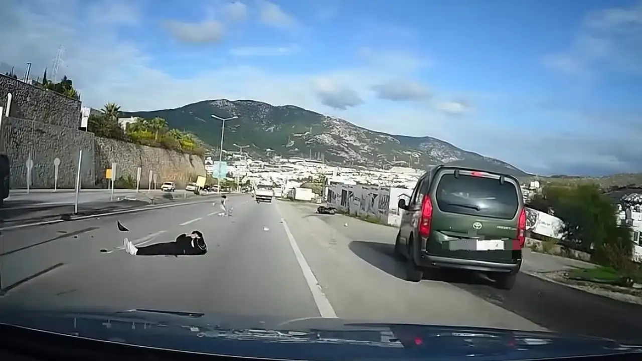 Edinilen bilgilere göre, duvar güçlendirme çalışması nedeniyle yolun tek şeride düşürüldüğü alanda motosiklet sürücüsü, önündeki aracı sağından geçerek ilerledi. Aracın önüne geçtikten kısa süre sonra motosiklet, yolun sol kısmında bulunan trafik levhasına çarptı. Çarpmanın etkisiyle motosiklet takla atarken, sürücü ile yolcu yola savruldu.