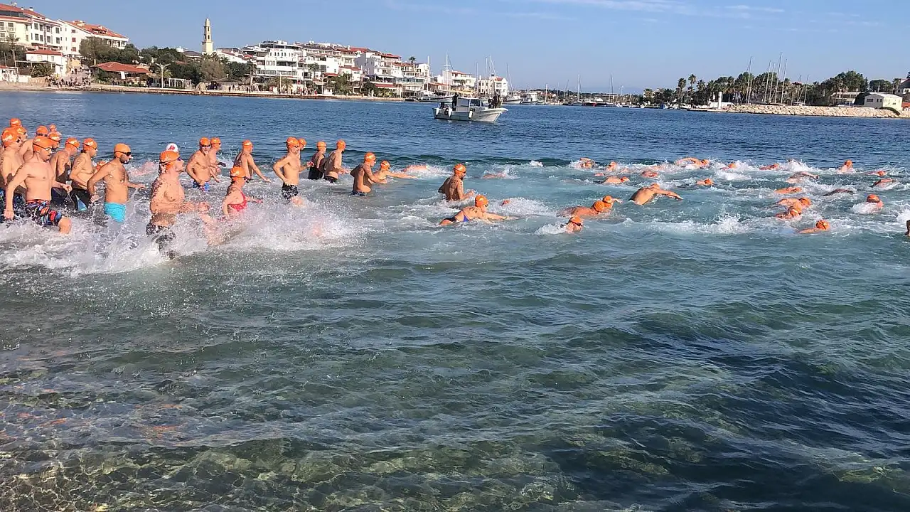 Datça'da düzenlenen 20. Uluslararası Açık Deniz Kış Yüzme Maratonu'nda yüzücüler, iki farklı parkurda mücadele ederken bu yıl kuraklığa dikkat çekmek amacıyla kulaç attı.