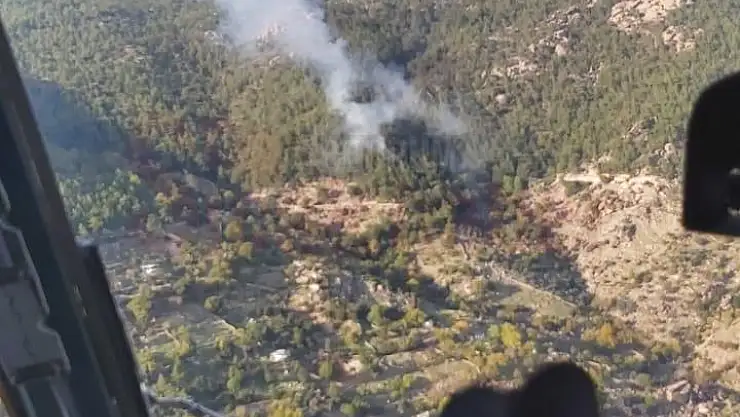 İhbar üzerine gelen 110 İtfaiye ekipleri ve Orman Bölge Müdürlüğüne bağlı ekipler yangına, havadan 2 helikopter müdahale ederken karadan ise 5 arazöz müdahale ediyor.