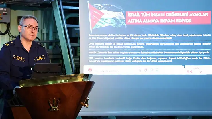 İsrail’in saldırılarına ilişkin Tuğamiral Aktürk, “Öte yandan aylardır Gazze’de masum sivilleri katleden ve 45 binden fazla Filistinlinin ölümüne sebep olan İsrail, uluslararası hukuku ve tüm insani değerleri ayaklar altına almaya pervasızca devam etmektedir. Orta Doğu’yu şiddet ve kaosa sürükleyen İsrail’in saldırılarının durdurulması, Gazze’de kalıcı ateşkes ilan edilmesi ve bölgeye insani yardımların ulaştırılması için uluslararası toplum üzerine düşen sorumluluğu bir an önce yerine getirmelidir. İsrail’in Lübnan’da ilan edilen ateşkese uyması ve Suriye’ye müdahalede bulunmaması bölgemizin istikrarı için şarttır. 1967 sınırları temelinde başkenti Doğu Kudüs olan bağımsız, egemen ve toprak bütünlüğüne sahip bir Filistin Devleti'nin kurulmasının olmazsa olmaz olduğunu bir kez daha vurguluyoruz” dedi.