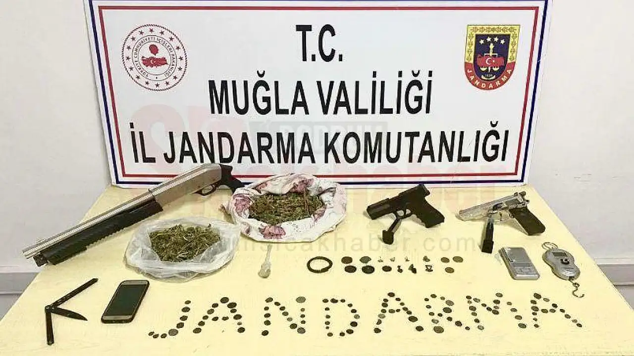 isimli şahsın ikametinde uyuşturucu madde, ruhsatsız silah ve tarihi eser bulundurduğu bilgisine ulaşıldı. Yapılan istihbarat üzerine Seydikemer İlçe Jandarma Komutanlığı ekiplerince 15 Ağustos 2023 günü saat 00.30 sıralarında şüphelinin ikametinde Narkotik Madde Arama Köpeği