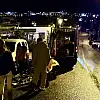 Islak yolda kontrolden çıkan plakası bulunmayan motosikletin sürücüsü yaralanarak sağlık ekiplerince hastaneye kaldırıldı.