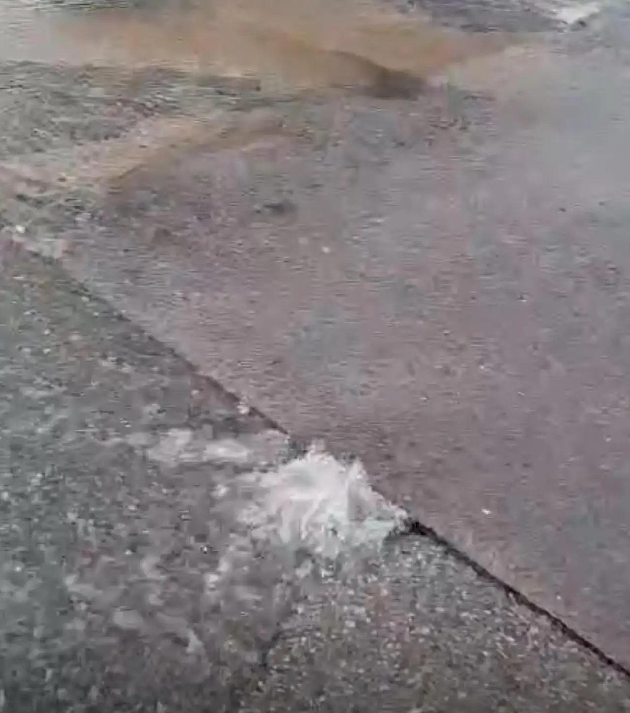 Olay yerinde çekilen görüntülerde, patlağın oluşturduğu çukur ve akan sular net bir şekilde görülürken, vatandaşlar tepkiliydi:
