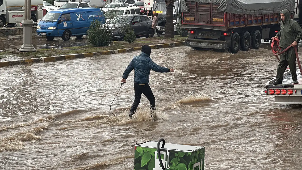 Sağanak yağışın kısa sürede sele dönüşmesiyle ilçe genelinde trafik durdu, yaşam olumsuz etkilendi.