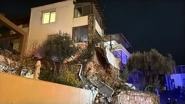 Bodrum'da sabaha karşı etkili olan sağanak yağış sırasında Çırkan Mahallesi Amiral Caddesi'nde bir binanın istinat duvarı çöktü. Çökme nedeniyle binanın temeli açığa çıkarken, binada bulunanlar büyük panik yaşadı.