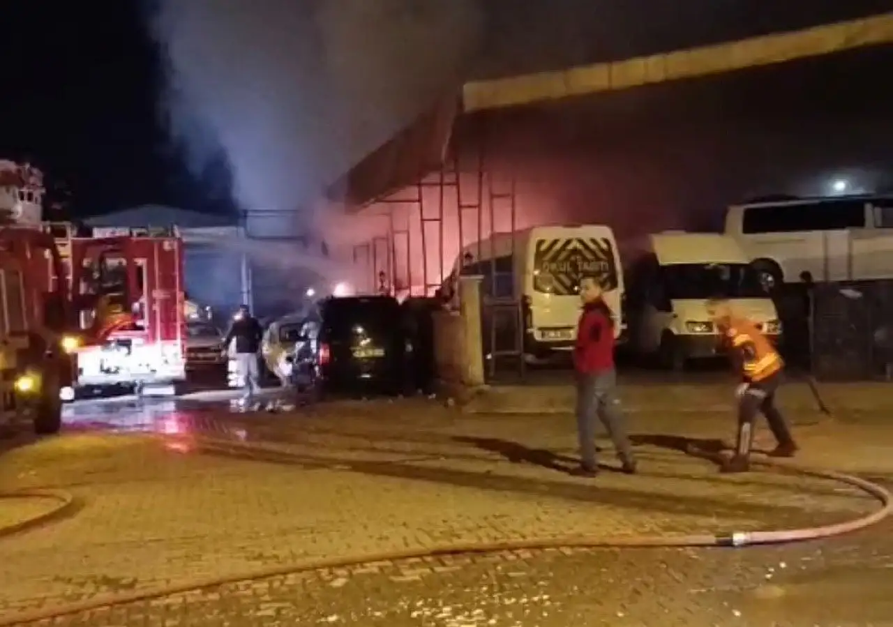 Sanayi sitesinde çıkan yangında 1 minibüs tamamen yanarak kullanılamaz hale gelirken, 2 minibüs, 1 otomobil ve 1 iş yeri de zarar gördü.