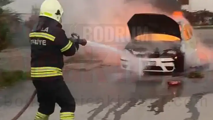 Edinilen bilgiye göre olay Turgut Özal Caddesi üzerinde meydana geldi. Seyir halinde gitmekte olan 09 AFV 733 plakalı otomobil seyir halinde giderken yanmaya başladı. Dumanları görüp aracı durduran sürücü araçtan kendini dışarı attı. İhbar üzerine olay yerine ekipler sevk edildi. Bodrum itfaiye grup amirliği ekipleri tarafından yanan araca müdahale edilerek söndürüldü. Soğutma çalışmalarının ardından kontrol altına alınan yangında araç kullanılamaz hale geldi. Ekiplerin yaptığı incelemeler sonucunda yangının çıkış sebebinin elektrik aksamından olduğu bildirildi.