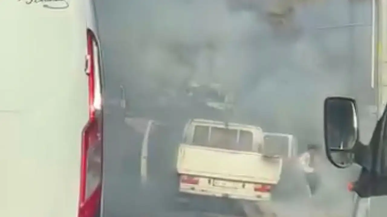 İddialara göre, kamyonetin seyir halindeyken egzoz kısmından yoğun duman çıktığı görüldü. Mekanik bir arızadan kaynaklandığı değerlendirilen dumanlar, çevrede ve araçtaki kişilerde kısa süreli panik yarattı.