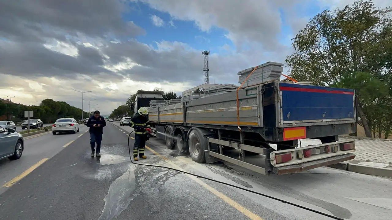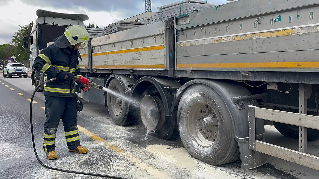 Fren arızası yaşayan tırda çıkan yangın büyümeden söndürülerek olası bir kazanın önüne geçildi.