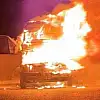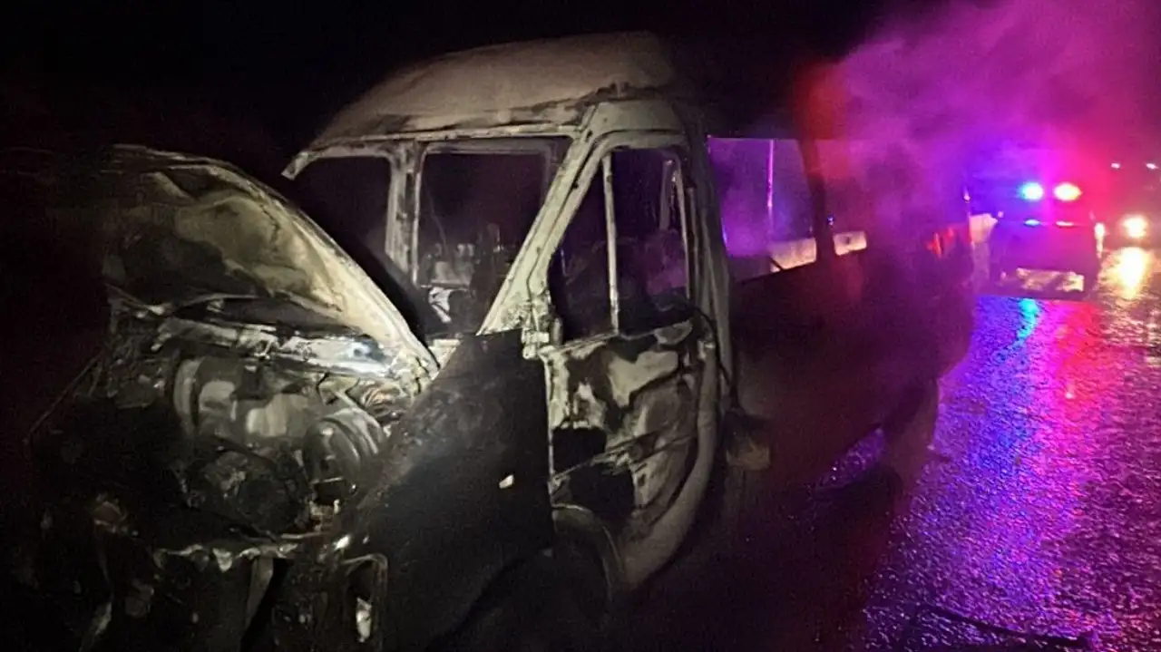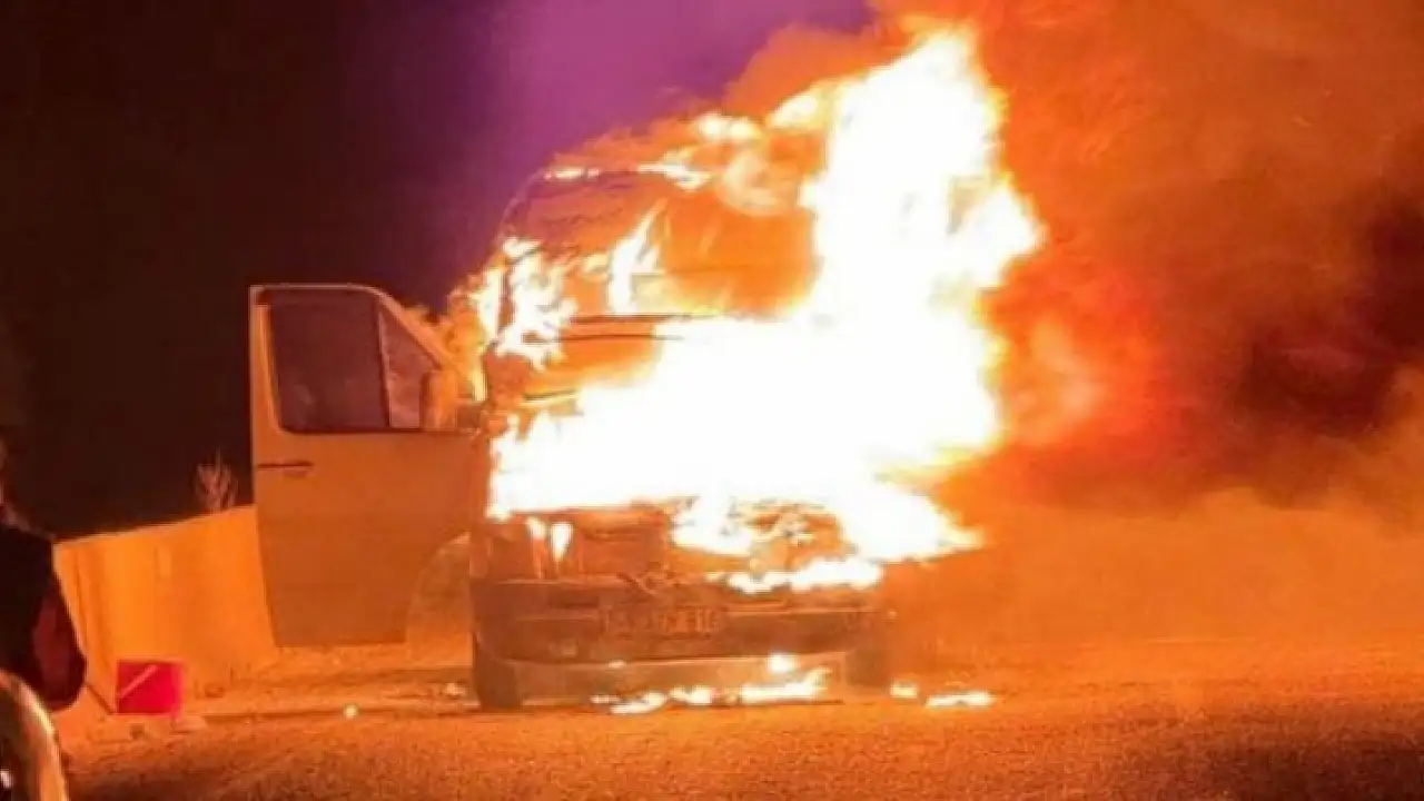 Seyir halindeki minibüs alev alev yandı