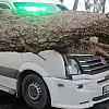 Seyir halindeki minibüsün üstüne ağaç devrildi