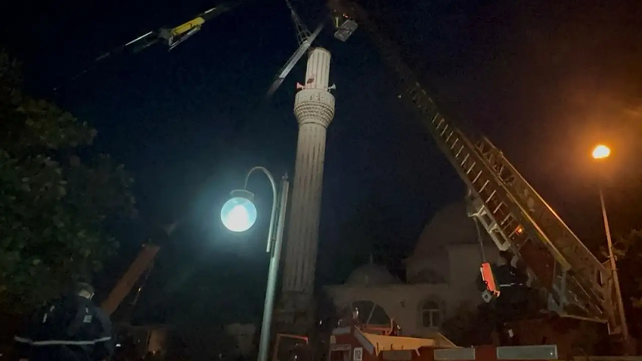 Camiden vatandaşlara "dikkatli olun" uyarıları yapılırken, itfaiye ekipleri camiye gelerek geniş güvenlik önlemleri altında külahı sökmek için çalışma başlattı. Külahın tamir edilip tekrar yerine takılacağı öğrenildi.