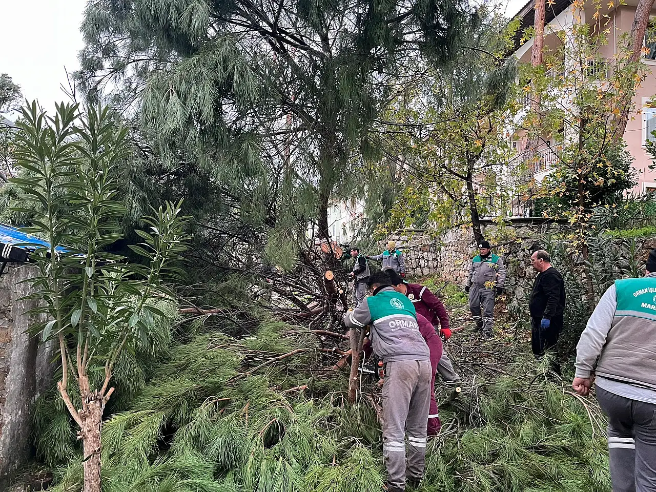 Marmaris Orman İşletme Müdürlüğü’ne bağlı ekipler, fırtına nedeniyle yollara devrilen ve kırılan ağaçların kaldırılması için çalışma yürütürken, belediye ekipleri ise ilçe genelinde çöp ve çevre temizliği çalışmalarını aralıksız sürdürüyor.