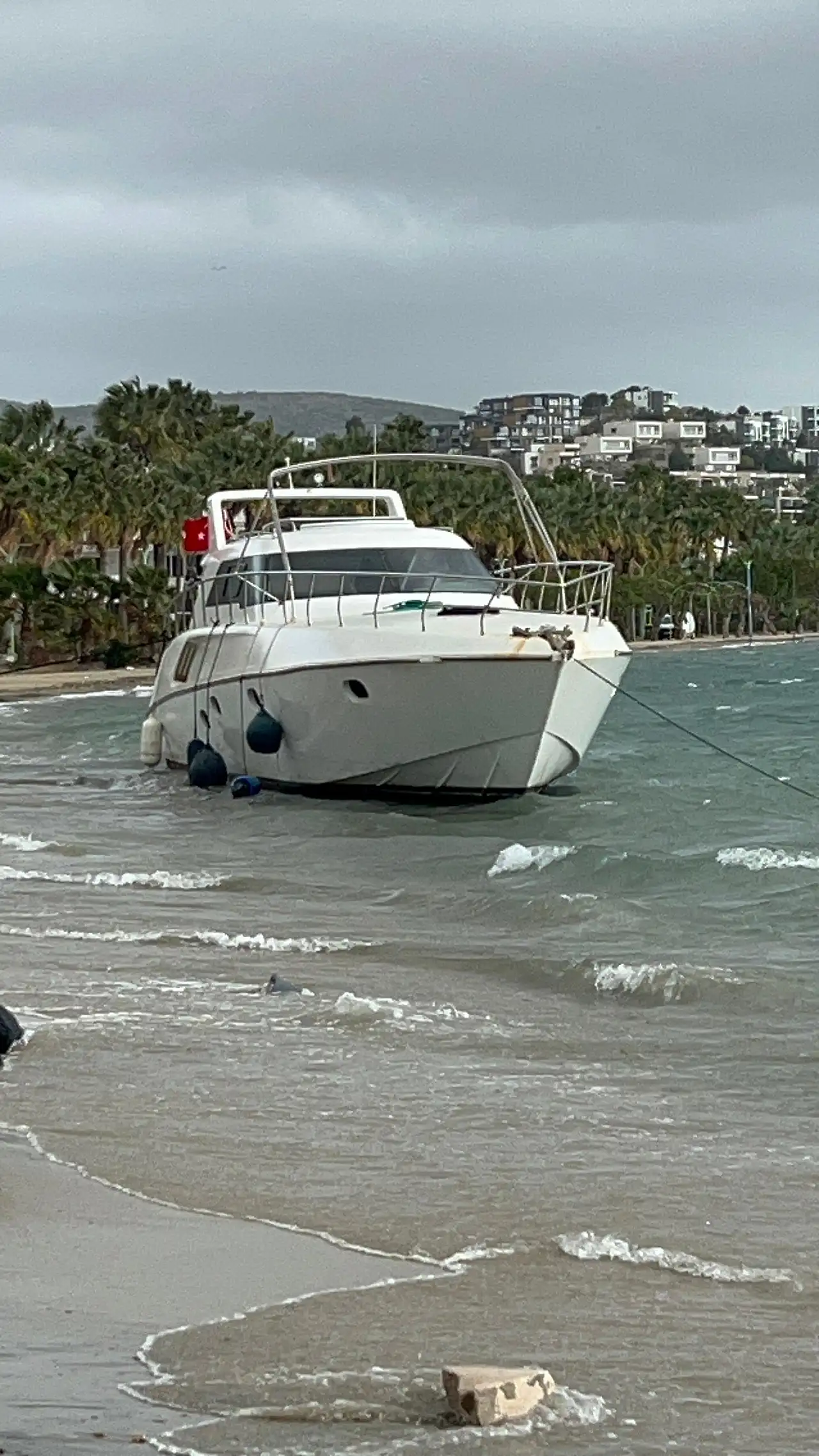 Meteoroloji’nin uyarılarının ardından başlayan fırtınada, ilk olarak bir motoryat ile katamaran tipi yelkenli kontrolsüz şekilde kıyıya yöneldi. Sahilde bulunanlar, teknelerin daha fazla zarar görmemesi için hızlıca halatlarla karaya bağlayarak sabitlemeye çalıştı.
