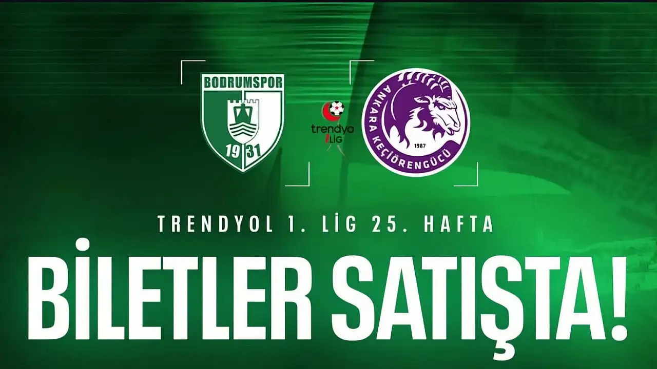 Trendyol 1. Lig'in 25. haftasında sahasında Ankara Keçiörengücü'nü ağırlayacak olan Sipay Bodrum FK'nın maç biletleri genel satışa çıktı. VIP tribün 448 TL'den satışa sunulurken, öğrenci ve kadın taraftarlara özel biletler 48 TL olarak belirlendi.