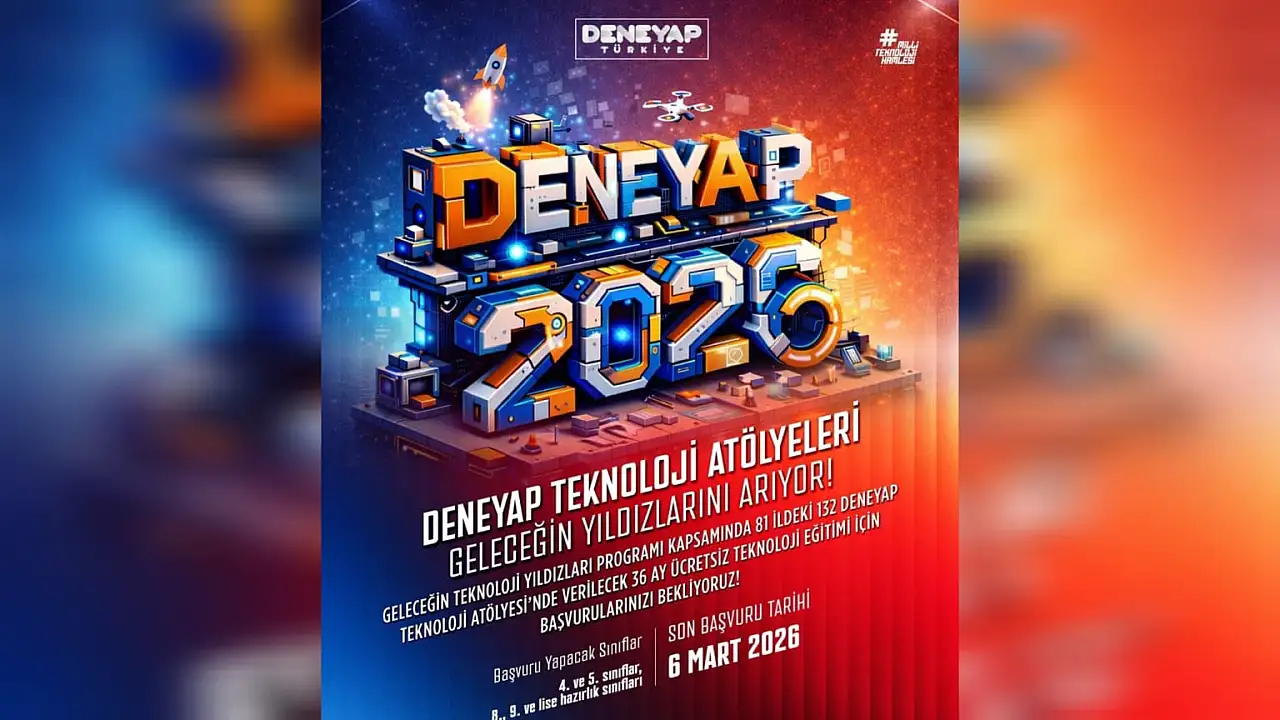 DENEYAP Teknoloji Atölyeleri için yeni dönem başvuruları başladı. 36 ay sürecek ücretsiz eğitim programı için son başvuru tarihi 6 Mart olarak açıklandı.