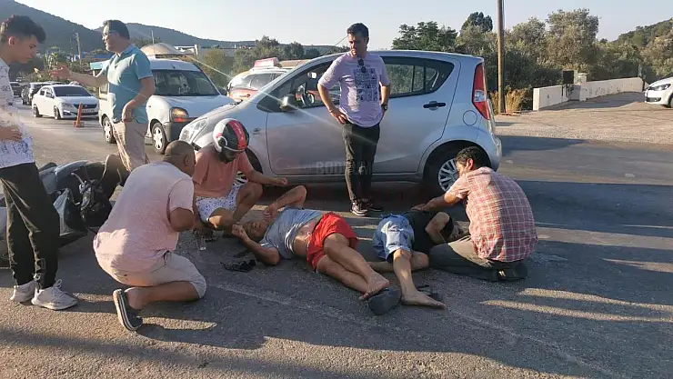 BODRUM HABER - Bodrum'un Torba Mahallesi'nde akşam saatlerinde meydana gelen kazada şerit ihlali yaptığı iddia edilen otomobil sürücüsü karşıdan gelen motosiklet ile çarpıştı.Motosiklette bulunan iki kişi ağır yaralandı.