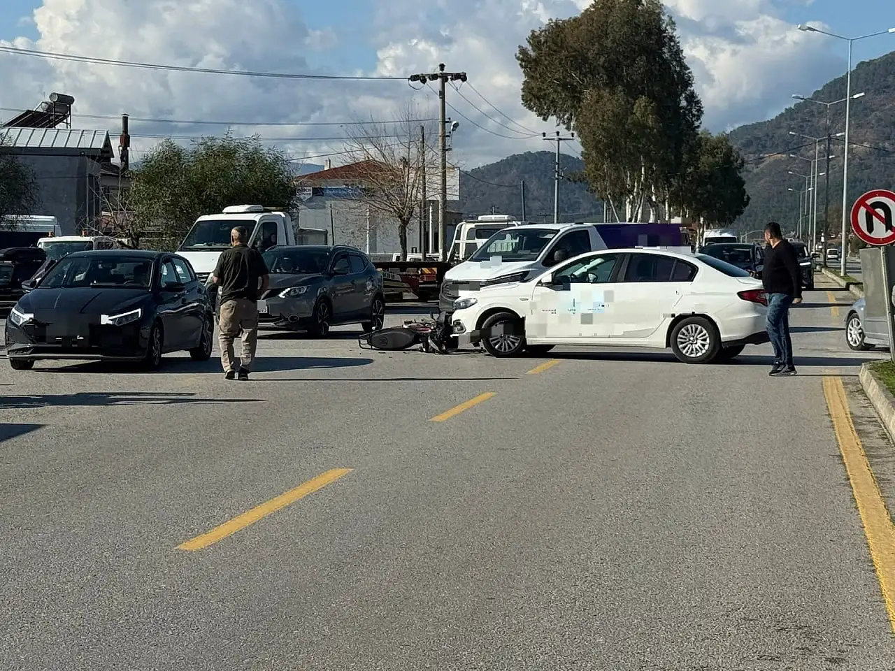 Edinilen bilgilere göre, sanayi kavşağında 48 AUG 3XX plakalı otomobil ile 48 ATA 6XX plakalı motosiklet henüz bilinmeyen bir nedenle çarpıştı. Çarpışmanın etkisiyle motosiklet sürücüsü yola savrularak yaralandı.