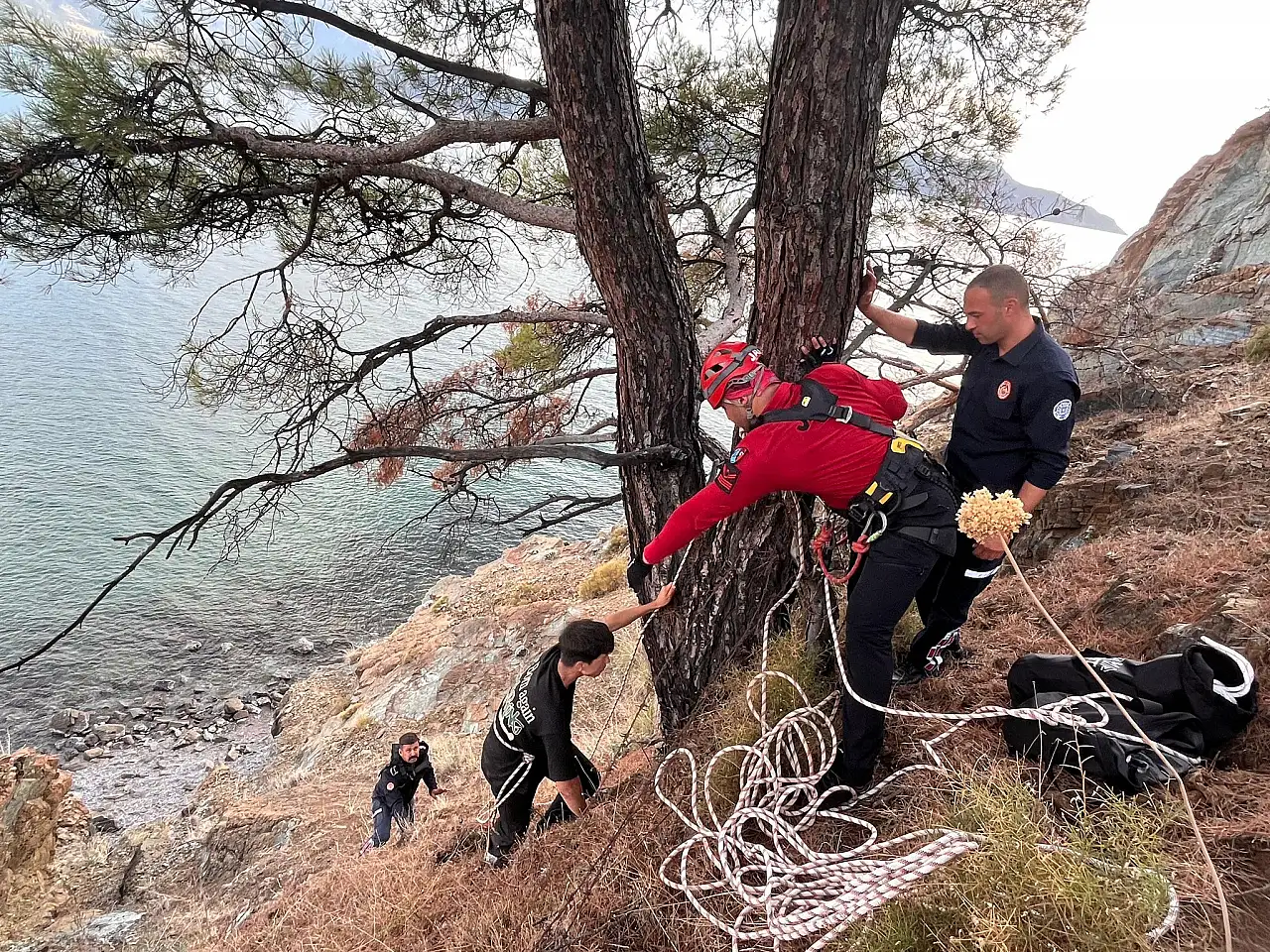 Fethiye ilçesinde, Çiftlik Mahallesi'nde bulunan Çalış Baba Türbesi yakınlarında bir kişi uçurumda mahsur kaldı.