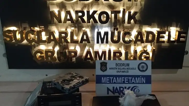 Bodrum Cumhuriyet Başsavcılığı koordinesinde Bodrum şehir girişinde durdurularak yapılan aramada aracın oto teybi içerisine saklanmış metamfetamin ele geçirildi.