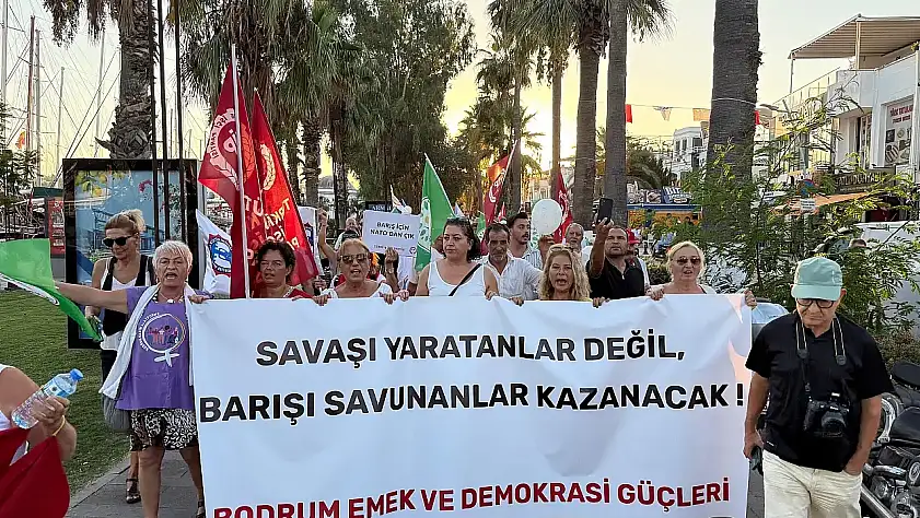 Tepecik Camii önünde bir araya gelen katılımcılar, kortej oluşturarak Bodrum Belediye Meydanı’na kadar yürüdü. Yürüyüşe çeşitli siyasi parti temsilcileri, sivil toplum kuruluşları ve dernekler katıldı. Kortejin en önünde “Savaşı yaratanlar değil, barışı savunanlar kazanacak” yazılı pankart taşınırken, katılımcılar boyunca barış vurgusu yapan sloganlar attı.