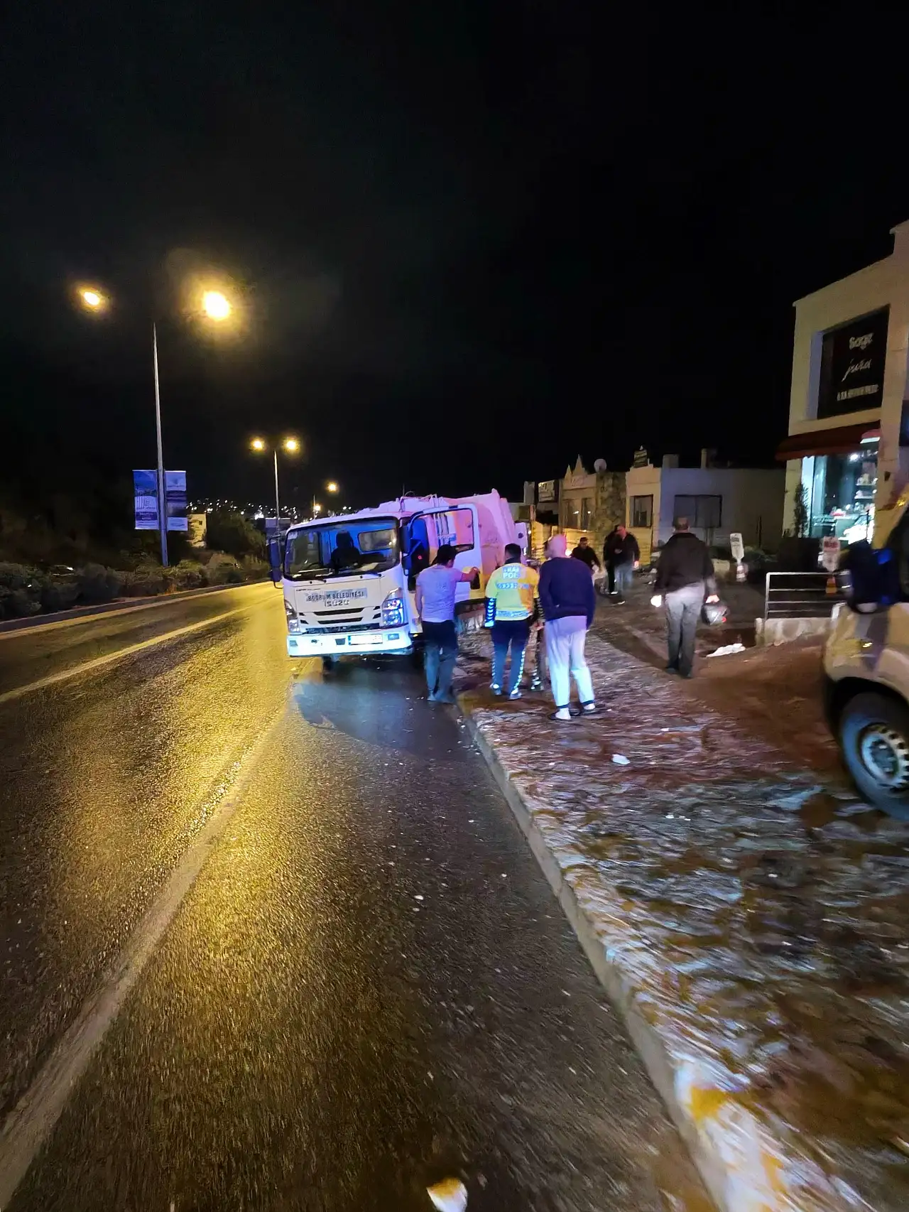 Kıbrıs Şehitleri Caddesi üzerinde, Jandarma Kavşağı’nı Bodrum istikametine geçtikten hemen sonra Bodrum Belediyesi Temizlik İşleri’ne ait çöp toplama kamyonu, yağışın etkisiyle sürücüsünün direksiyon hâkimiyetini kaybetmesi sonucu kontrolden çıktı.