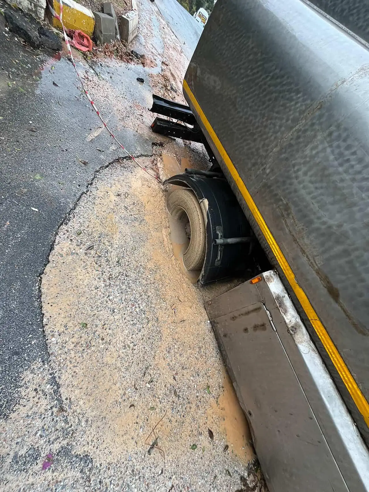 Bodrum Konacık Mahallesi Amiral Caddesi’nde AYDEM tarafından yapılan kazı çalışmasının ardından yolun asfaltlanmaması ve çakıllı halde bırakılması, iki gündür süren yağışlarla birlikte ciddi bir soruna dönüştü. Yağmurla yumuşayan zeminden geçmek isteyen bir su tankeri, zeminin çökmesiyle birlikte tekeri çukura gömülerek yolda mahsur kaldı.