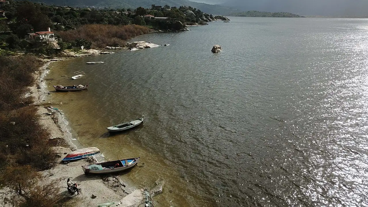 Yağmurlarla dolan Bafa Gölü, dronla görüntülendi