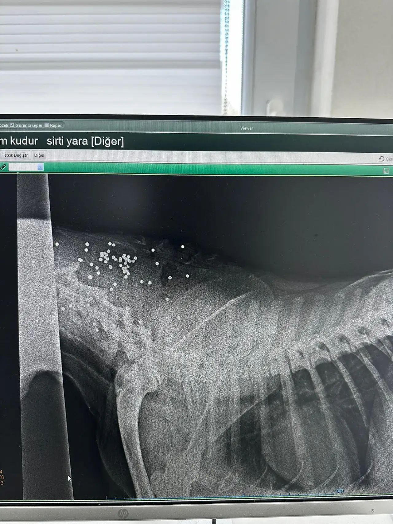 Vatandaşlar tarafından yaralı halde bulunan bir köpek, hayvanseverlerin hızlı müdahalesiyle veterinere götürüldü. Veteriner kliniğinde yapılan kontrollerde, köpeğin av tüfeğiyle vurulduğu ve sırt bölgesinde çok sayıda saçma bulunduğu görüntülendi.