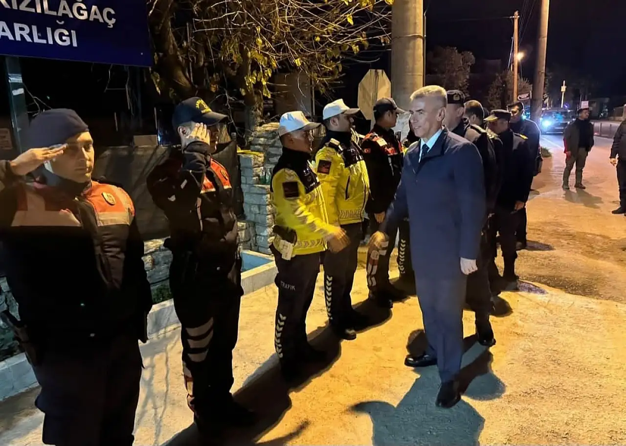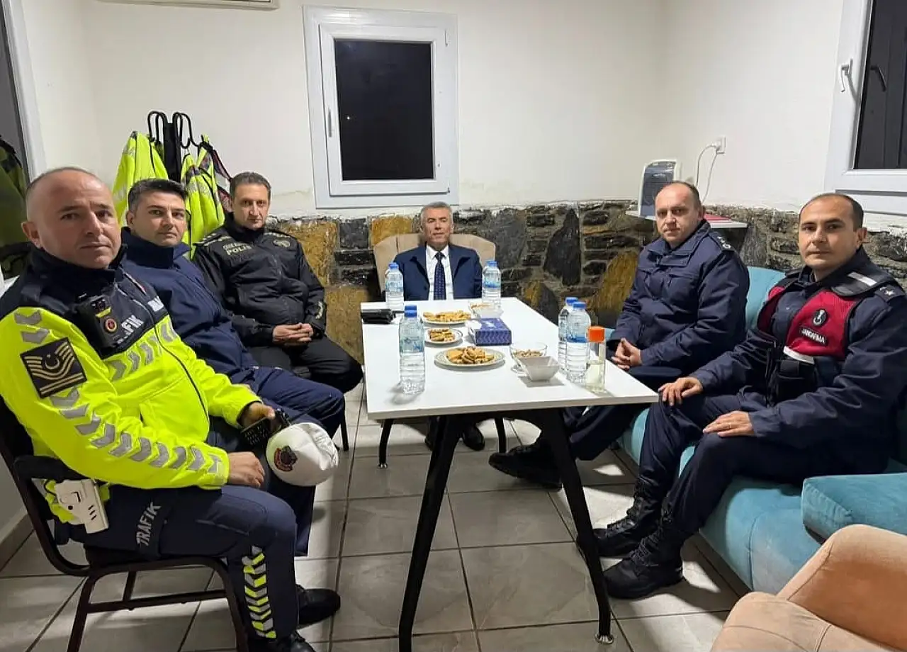 Bodrum Kaymakamı Ali Sırmalı İlçe Jandarma Komutanı, İlçe Emniyet Müdürü ve İlçe Sahil Güvenlik Komutanı ile birlikte yılbaşı akşamı görev yapan güvenlik personelini ziyaret etti.