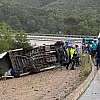 Yolcu minibüsünün devrilmesiyle meydana gelen kazada 7 kişi yaralandı ekipler bölgeye hızla müdahale etti.