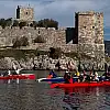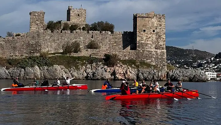 Halikarnas Kürek Kulübü sporcuları, Zemheri soğuğuna rağmen elverişli havayı fırsat bilerek 22 kilometrelik zorlu parkurda Bodrum Kalesi'ne kürek çekti.