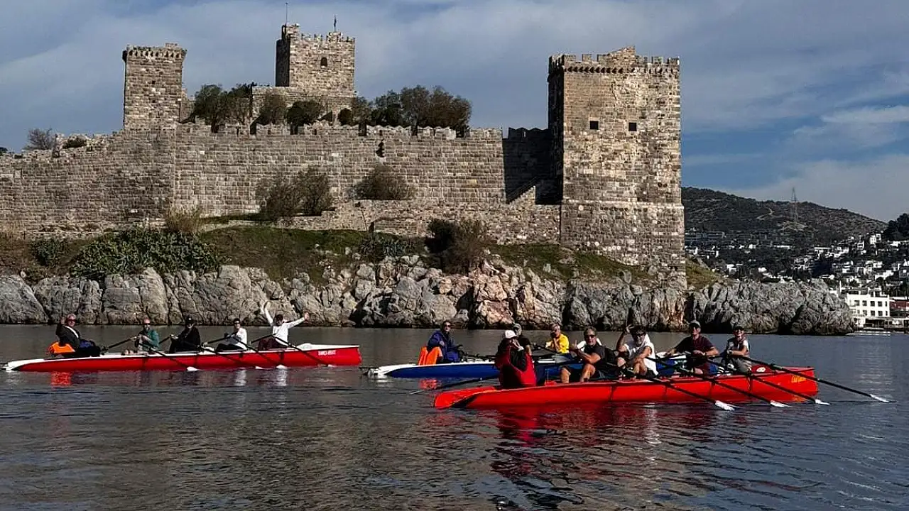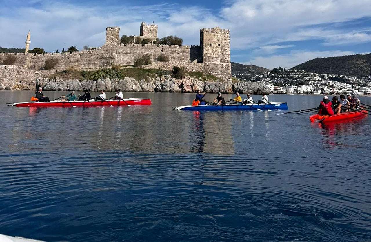 Bitez Koyu’nda faaliyet gösteren Halikarnas Kürek Kulübü sporcuları, ocak ayının sonuna kadar etkisini sürdüren Zemheri fırtınası sırasında yüzünü gösteren elverişli hava koşullarını fırsata çevirerek denize açıldı. Sporcular, küreklerini Bodrum Kalesi istikametine çevirdi.